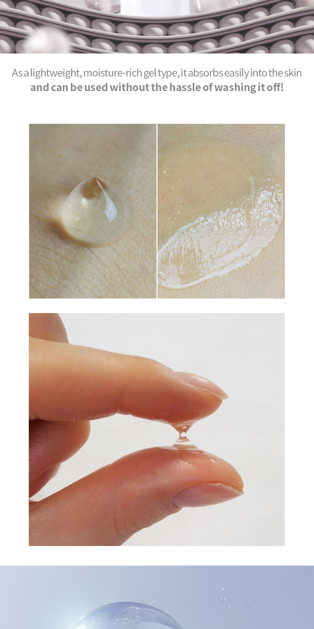 Spot gel cares for small parts on face and body. It absorbs fast without stickiness as a moist and tight gel type.