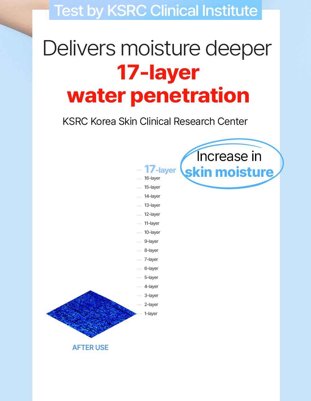 • clinically proven to pentrate 17 layers of skin and increase moisture levels by 230%