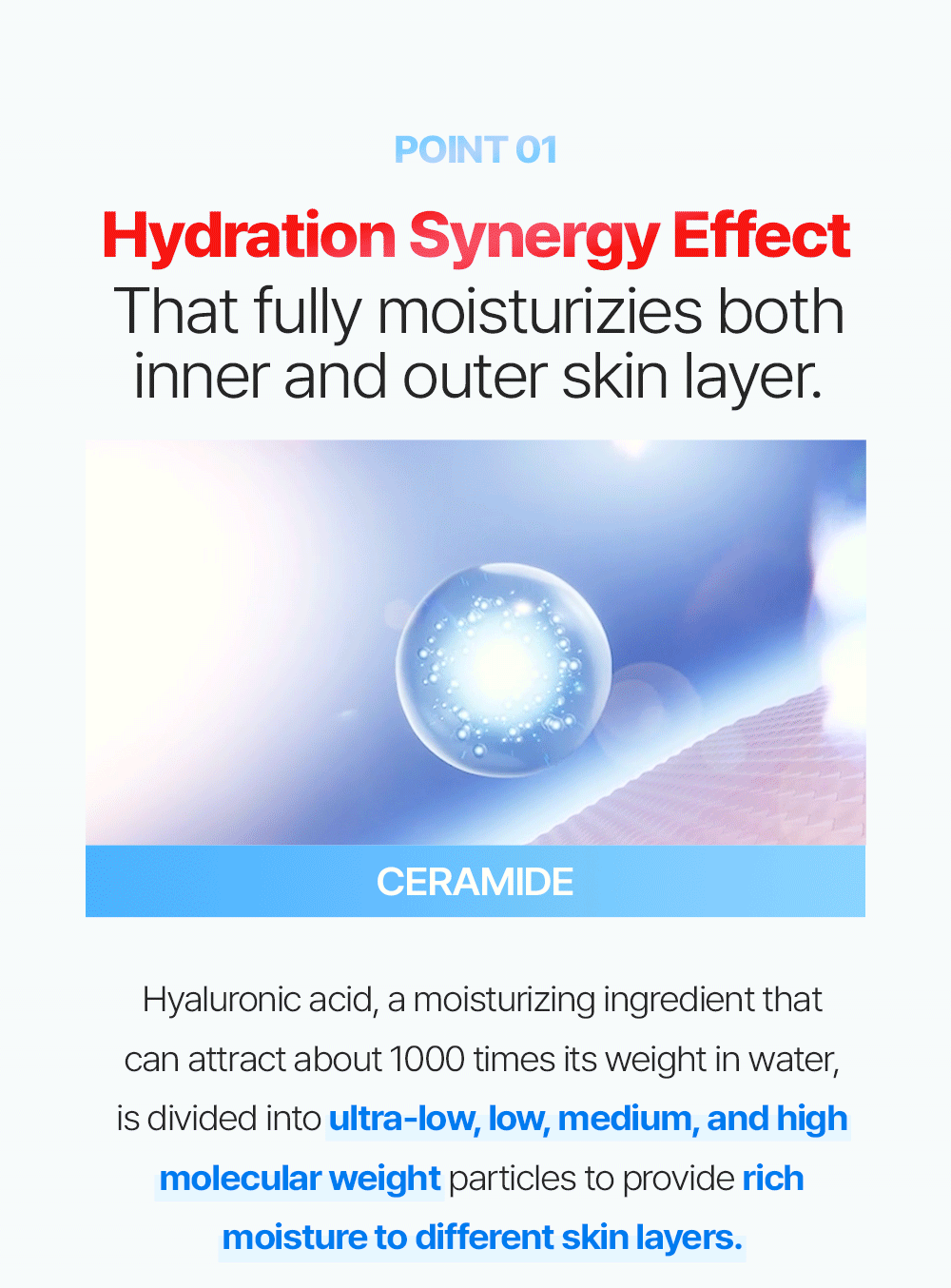 • contains the proprietary Cerauronsan Complex, a blend of ceramide and 10 types of hyalunoic acid for enhanced hydration and moisure synergy