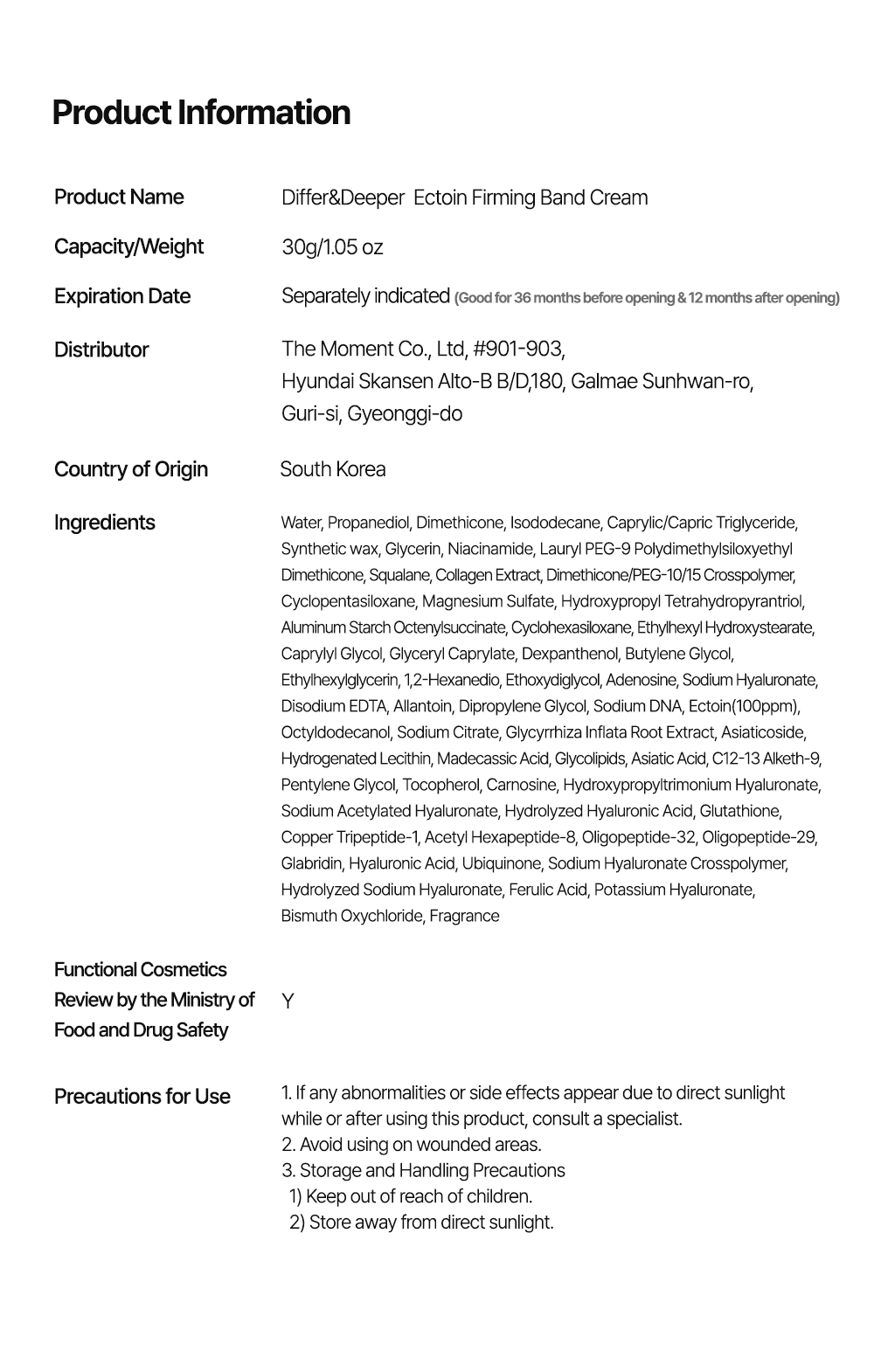 CPNP_DIFFER&DEEPER Ectoin Firming Band Cream Ectoin 6 types of peptide complex, Wrinkle