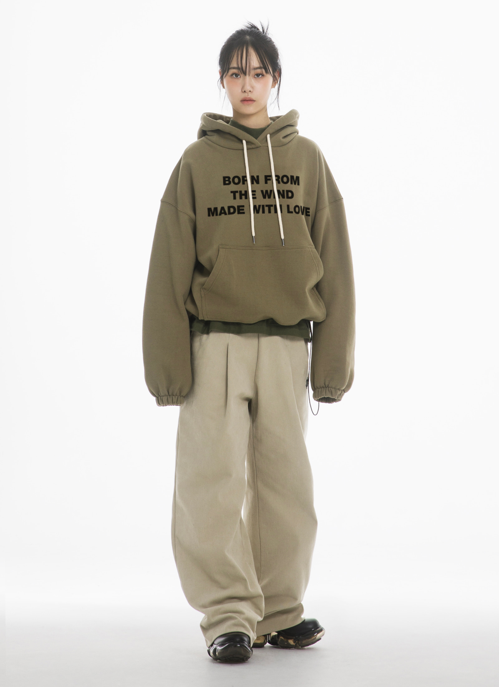 This hoodie is crafted with a meticulously designed, high-quality pattern that ensures excellent fit and durability. It features a trendy mid-length oversized silhouette that combines comfort with modern style. The adjustable drawstring at the hem allows you to create two distinct looks—whether you prefer a relaxed, loose fit or a more cinched, tailored shape.